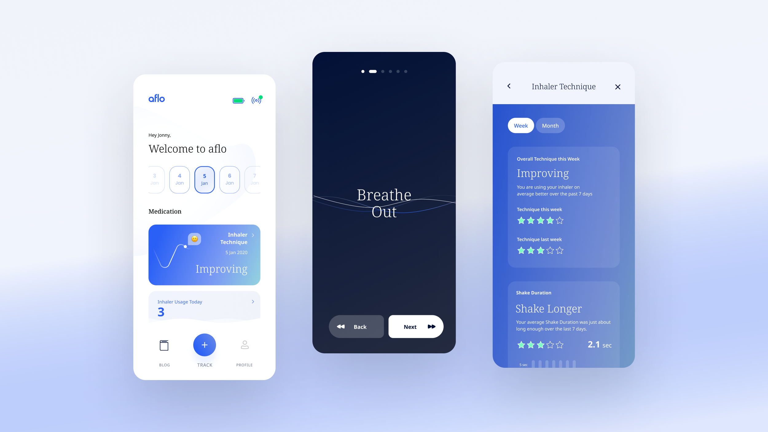 Aflo was created, a user-friendly app that would gently guide users through proper inhalation techniques while delivering actionable insights into their health.